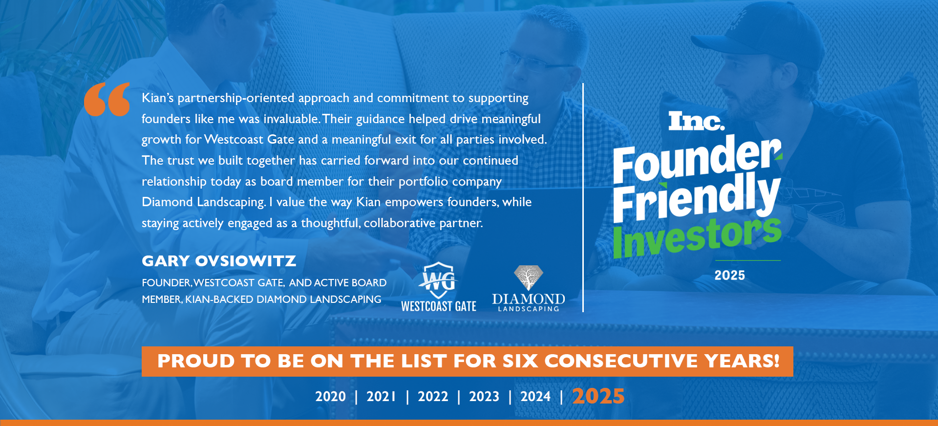 Kian partnered with two private investment firms, Bochi Investments and Skyline Global Partners, to combine the two leading regional operators, Salem Westchester LLC and Riverside Fence Company, to create Perimeter Holdings USA.